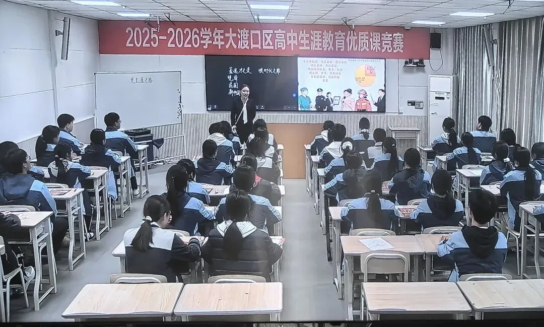 近日,由重庆市大渡口区教师进修学院举办的“2025-2026学年高中生涯教育优质课竞赛”圆满落幕。我校张媛媛老师凭借一堂别开生面的融合课——《鉴选才之变,顺时代之需》,在众多参赛选手中脱颖而出,荣获一等奖!