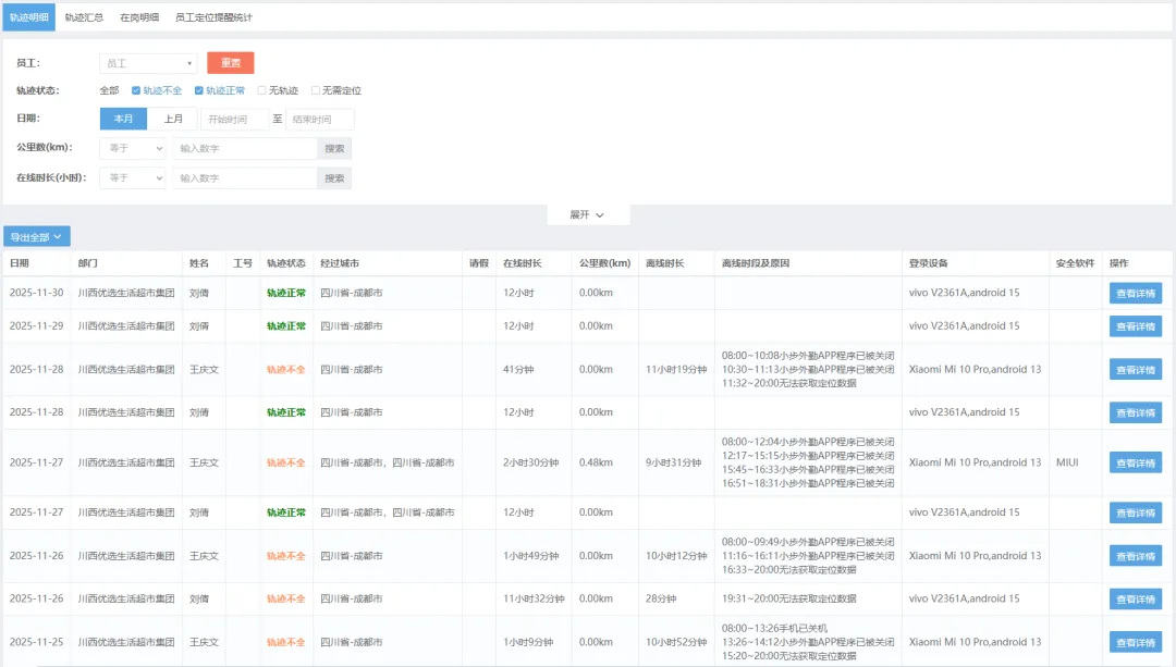 这些数据的采集目的,是还原员工工作时间内的真实外勤行为,而不是监视员工本人。
