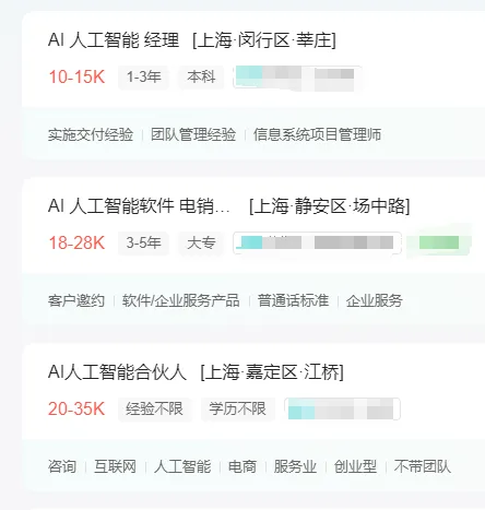 目前AI技术已经应用到多个领域,例如AI语音、AI写作、AI编程,市面上与AI相关的岗位也越来越多。