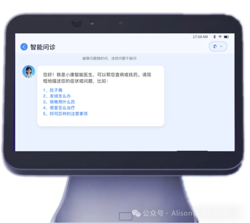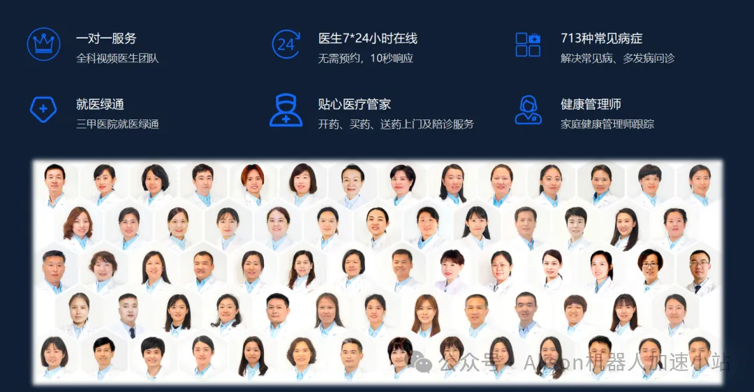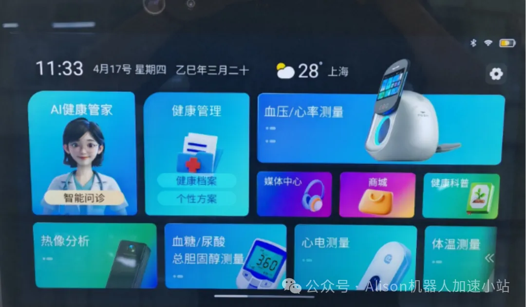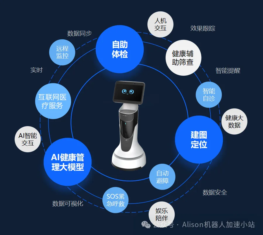 一款全生命周期AI健康管理机器人,具有体征测量、24小时视频医生问诊、AI健康管理、定位建图、疾病预防、自动避障、健康科普和娱乐陪伴等核心功能,通过医用级传感器及设备互联,最高可实现上百种体征指标筛查,结合AI健康大模型技术,可针对用户身体指标进行量化评估,通过AI+医生/健康管理师分析给出合理的健康改善计划,帮助用户达成健康目标,提高生活质量。