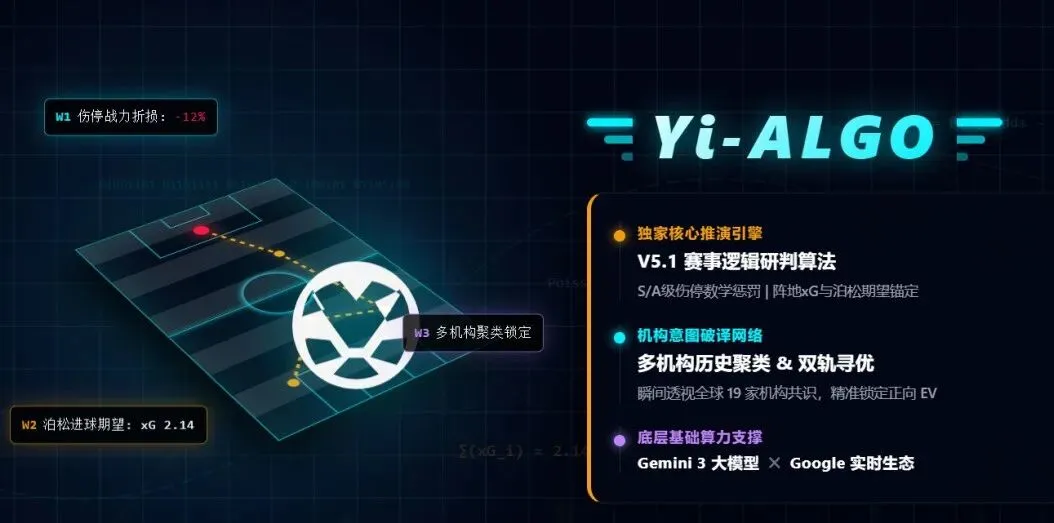 YiAlgo AI Model 量化分析模型是抛弃主观情感、纯粹由大语言模型与数学期望驱动的赛事分析引擎。为你在深不可测的数据博弈中,寻找理性的出路。