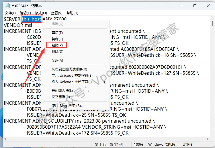14.鼠标右击【msi2024.lic】选择【打开方式】,选择【记事本】打开。