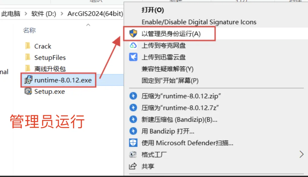返回文件夹,右键点击:Setup 程序,选择:以管理员身份运行。