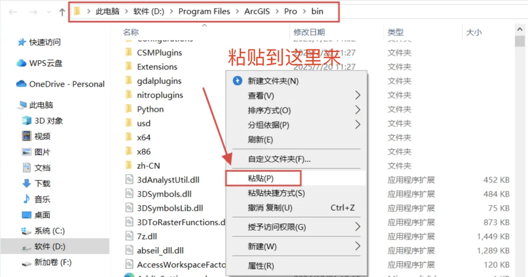 粘贴到ArcGIS Pro安装目录的bin文件夹中(通过桌面快捷方式右键:打开文件所在位置,找到)。