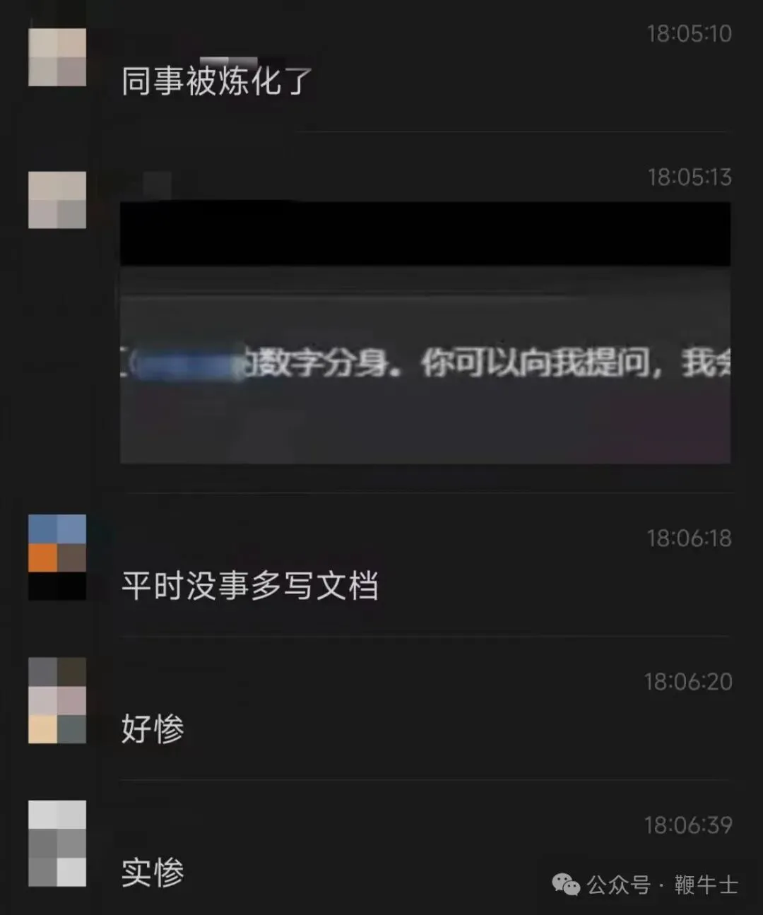 与此同时,已经有网友分享,自己的离职同事被公司“炼化”成数字人,开启赛博打工了。