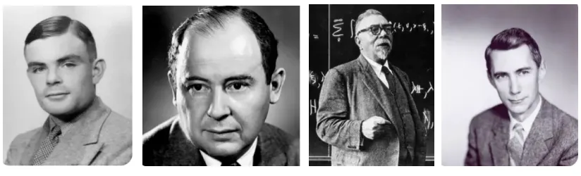 先回顾人工智能发展历史上的先驱者。在达特茅斯会议之前,人工智能的研究者以数学家为主,比如图灵(Alan Mathison Turing)、冯·诺伊曼(Von Neumann)、维纳(Norbert Wiener)、香农(Claude Elwood Shannon)等人,他们的工作集中于构建人工智能的理论与概念基础。会议之后,明斯基(Marvin Minsky)、麦卡锡(John McCarthy)、西蒙(Herbert Simon)和纽厄尔(Allen Newell)等人对人工智能的进一步发展起到了关键作用。