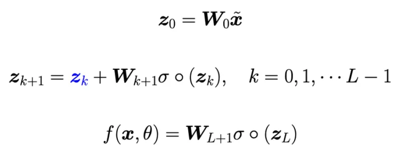 解决的办法很简单:回到神经网络的动力系统定义,如果我们在右边加上一个项zk,且在切始化时将参数W取得很小,这个动力系统可以视为一个恒定动力系统加上一个小的扰动。此时,κ就会非常接近1,从而解决了梯度指数爆炸或消失的问题。这就是残差网络能够解决深度灾难的本质原因。