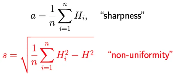 分析这个随机动力系统的稳定性,需要引入两个量:所有矩阵Hj的平均值,我们称之为尖锐度(sharpness);还有方差,我们称之为不均匀度(non-uniformity):
