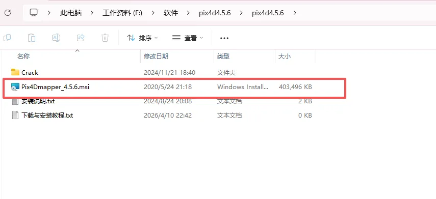 2.进入解压文件目录,运行【Pix4Dmapper_4.5.6.msi】程序