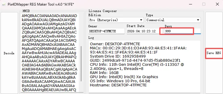 14. 复制生成的机器标识码,将之粘贴至HWID字段,接着点击【解码】按钮。