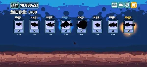 6、另外,赚取的货币还可在商店购买解锁新的鱼苗和鱼缸,以及装饰物。