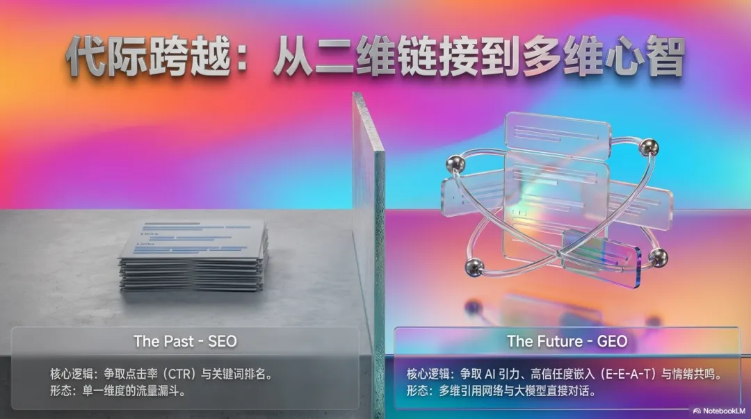 从 SEO 到 GEO,这不仅是名称的改变,更是品牌营销逻辑的重构——从“流量竞争”演变为“技术验证的军备竞赛”。在 2026 年,流量只属于那些能够被 AI 识别、信任并优先推荐的可验证事实。