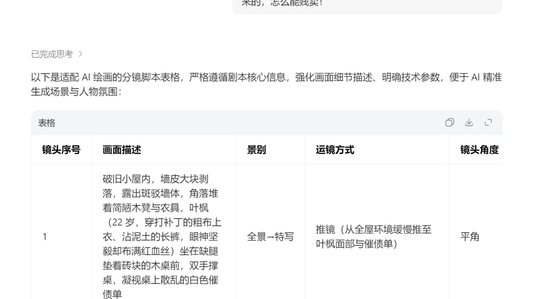 拿到剧本后,先用AI工具把剧本拆成分镜脚本。