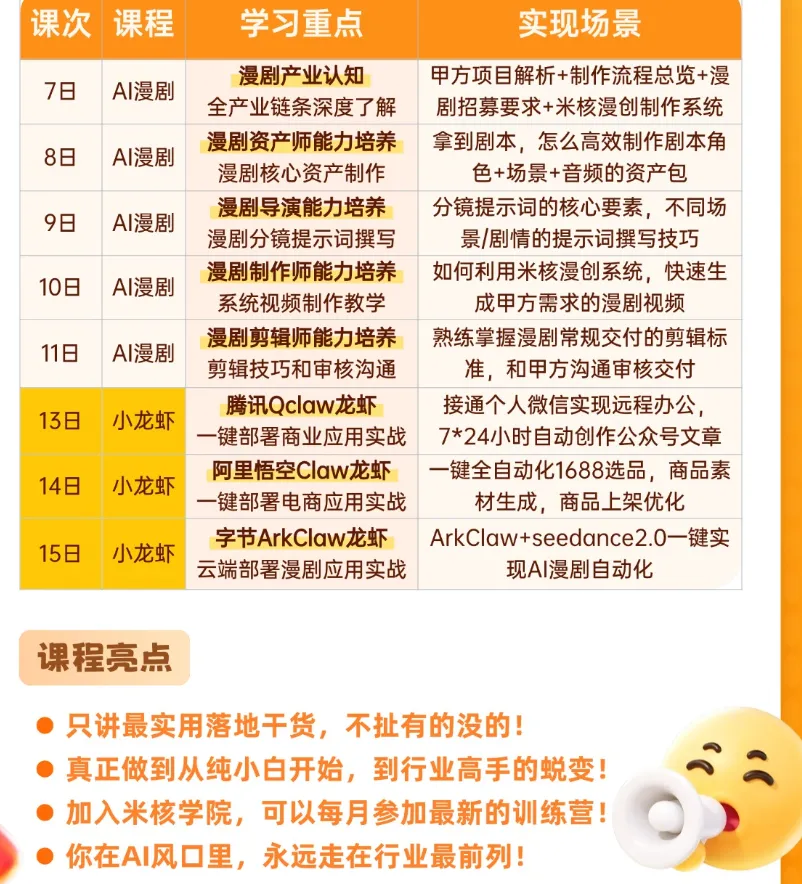 之前说我近期有AI漫剧+openclaw+电商的课,这不给大家准备了惊喜!