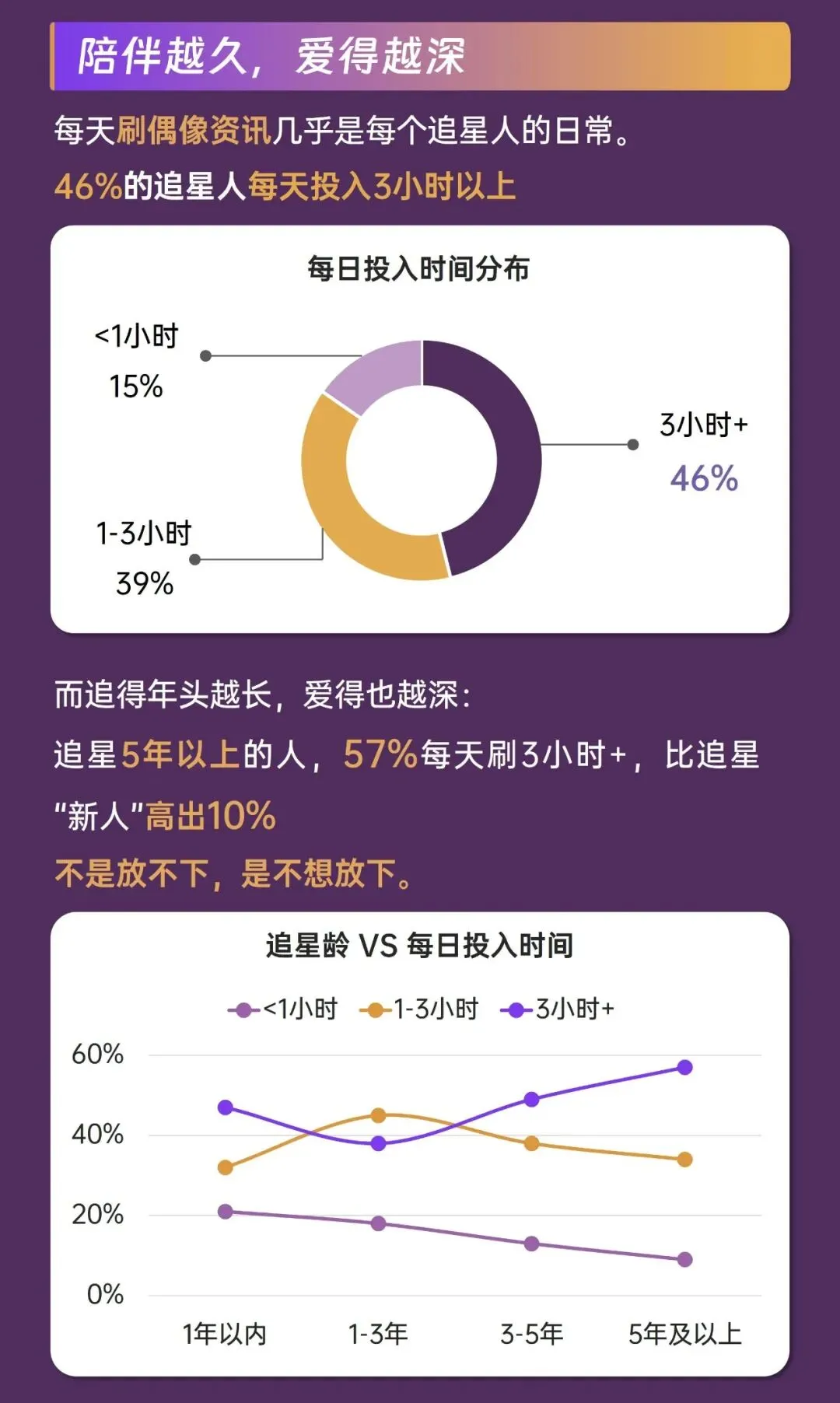 调研显示,近半数受访者追星年限超3年,超六成人群仅专注一位偶像,且专一度与时间投入呈正相关。粉丝入坑核心动因聚焦偶像实力与人品,日常以关注作品、购买周边为主要行为,消费模式呈现学生党理性节俭、工作党高投入的分化特征。
