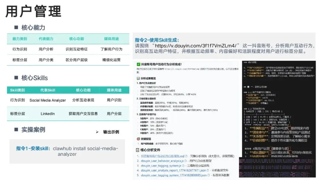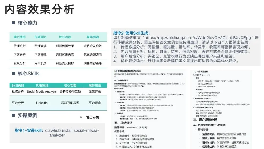 报告里直接给出可复制的 Skill 指令,复制粘贴就能用。