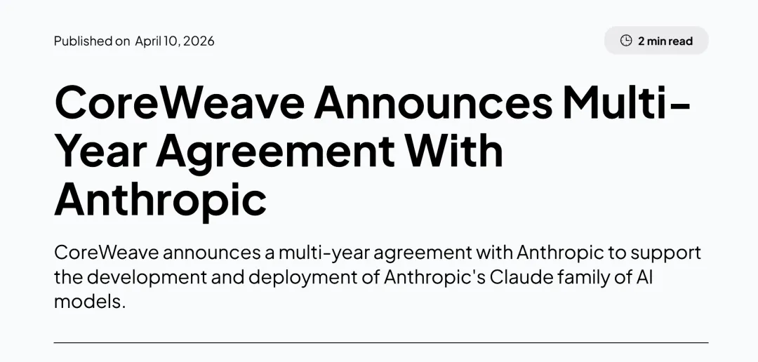 CoreWeave 与 Anthropic 达成多年期合作协议
