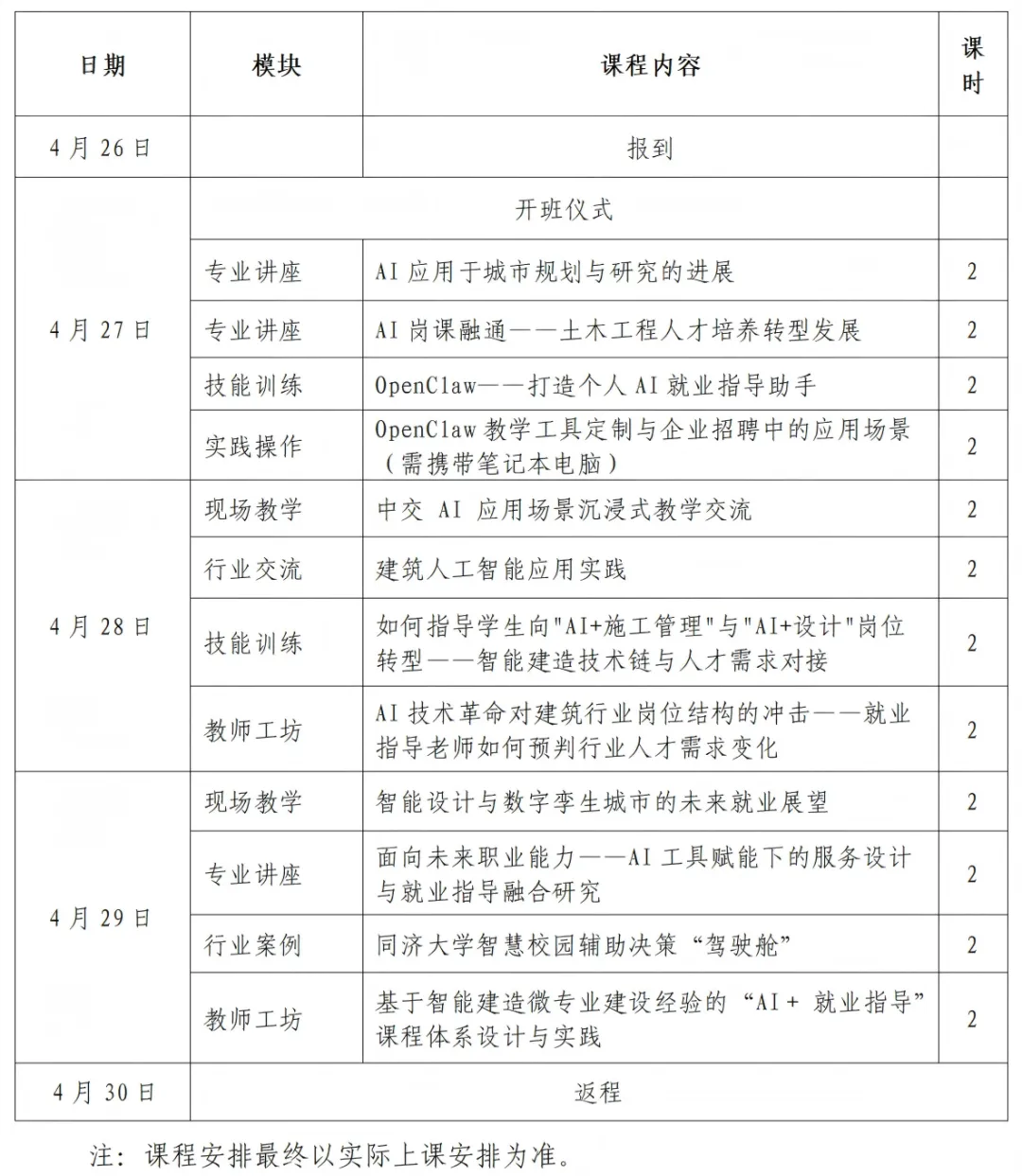 为深入推动高校毕业生实现高质量充分就业,积极推广 “专业 + 人工智能应用” 融合育人模式,受教育部高校学生司委托,全国普通高校毕业生建筑地产行业就业创业指导委员会特举办 “AI 赋能大学生就业能力提升建筑行业师资培训班(第3期)”。本次培训由作为委员会秘书单位的同济大学具体承办。