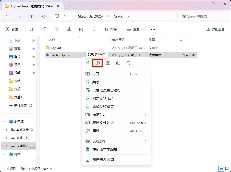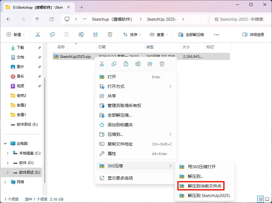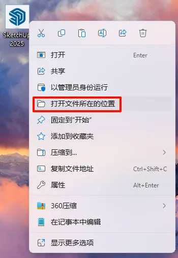 8.右键桌面【SketchUp 2025】图标,选择【打开文件所在位置】