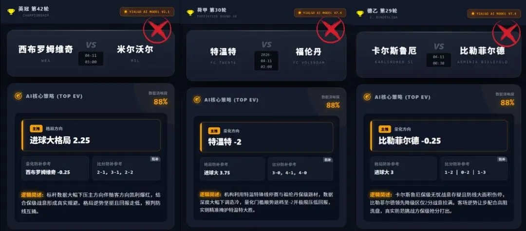 (所有赛事已设置无门槛查看)【Yi-Algo AI 限时低门槛体验倒计时2天】周五早场澳超+德法乙+荷甲+英冠全维算法量化研判已完成