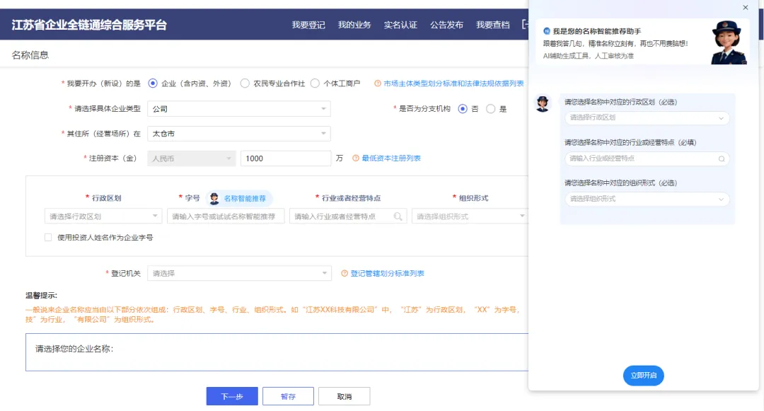 从反复试错到一键生成,重塑名称申报新范式
