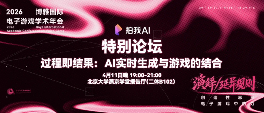 4月11日晚19:00——21:00,北大燕京学堂。我们想和你聊聊:AI赋能实时生成时代下,游戏设计权在开发者、玩家与AI之间的新格局。