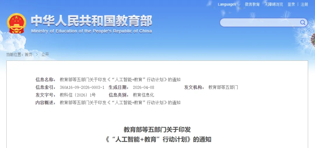 根据《教育强国建设规划纲要(2024—2035年)》战略部署,按照《国务院关于深入实施“人工智能+”行动的意见》的要求,制定本计划。