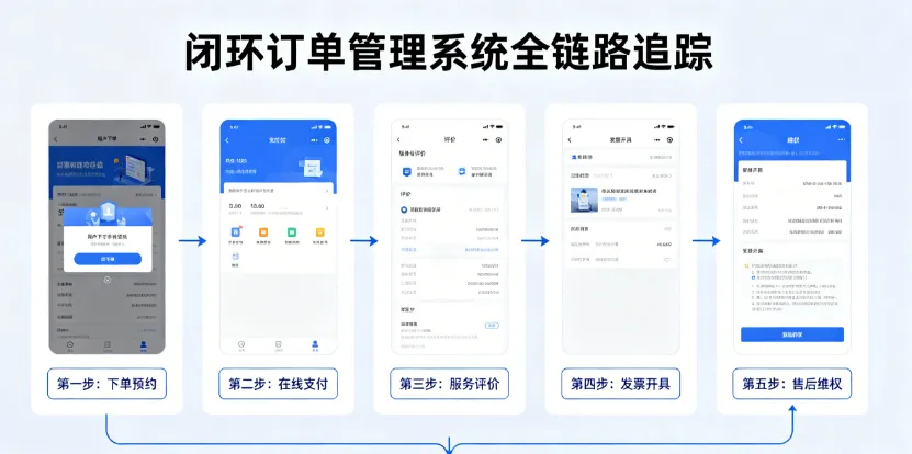 涵盖下单预约、在线支付、服务评价、发票开具及售后维权的全链路追踪,确保每一单服务都有迹可循。