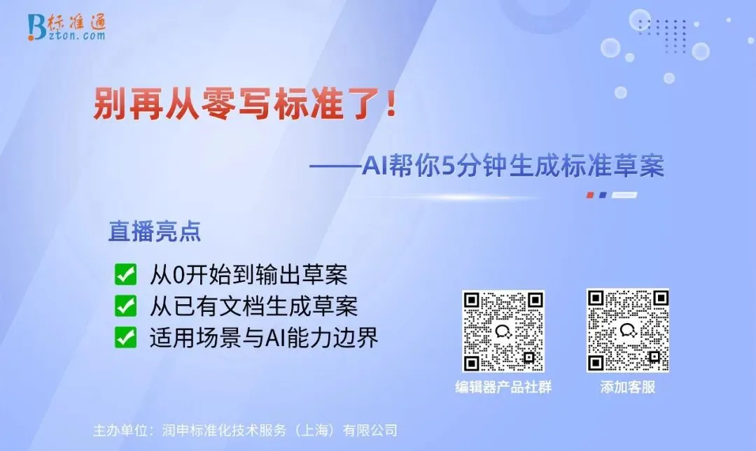 本次直播围绕本次直播通过场景实操演示,帮助用户掌握使用AI进行标准草案的编写,助力实现标准编制工作的提质增效。