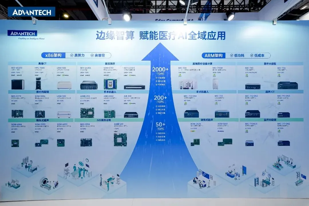在本届 CMEF 展会现场,研华科技以「边缘智算 赋能医疗 AI 全域应用」为核心方向,携x86与Arm双架构并行的全梯度边缘算力产品矩阵重磅亮相,直击行业普遍面临的 “算力不匹配、架构不兼容、AI 部署难” 三大核心挑战,以医疗级、全场景、可定制的边缘算力基建解决方案,为医疗设备厂商与医疗机构提供稳定、高效、可落地的算力支撑,让 AI 技术真正转化为临床可用能力。