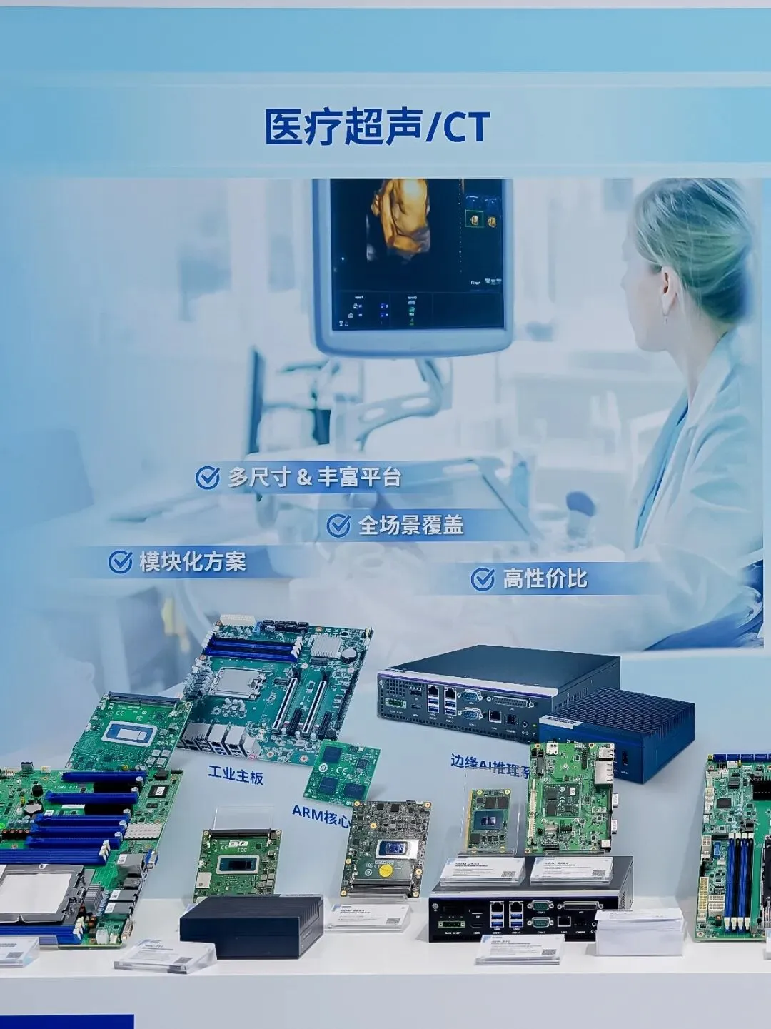 研华以x86+Arm双架构并行的全梯度边缘算力产品矩阵,实现从便携医疗设备到高端医疗装备的全域覆盖 ——x86架构主打高算力、高兼容性,精准匹配高端设备的强算力需求;Arm架构主打低功耗、小体积,完美适配便携小型化设备,为医疗AI落地提供全场景可定制的算力基建支撑。
