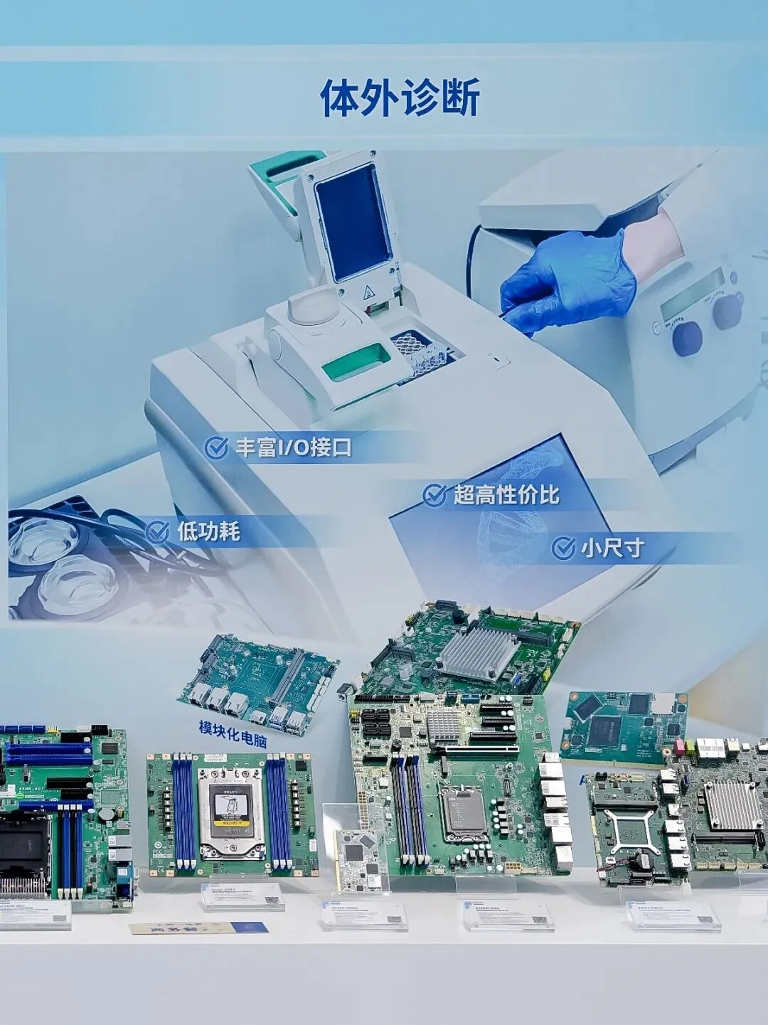 针对 IVD 设备多模块协同、长时稳定运行、长生命周期供应以及对成本敏感的核心需求,研华提供工业主板、嵌入式单板电脑和 Arm核心板等高可靠、低功耗方案,支持长达十年供货周期,助力IVD设备精准检测。