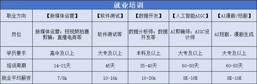 杭州的伙伴们注意啦!人工智能、自媒体、大数据/云计算等行业正释放大量就业机会,现在正是抓住机遇的好时机!杭州就业培训课程来了:专业技能提升 + 就业指导保障,为你提供一站式就业服务,助你顺利入行!