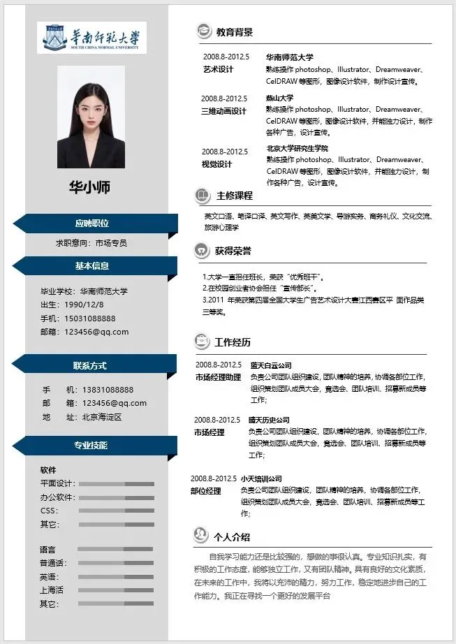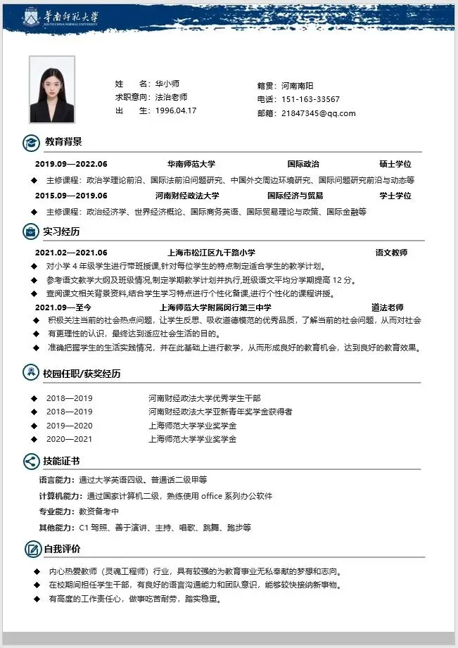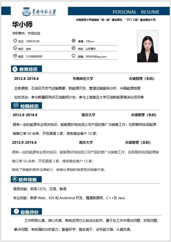 华师专属简历升级版