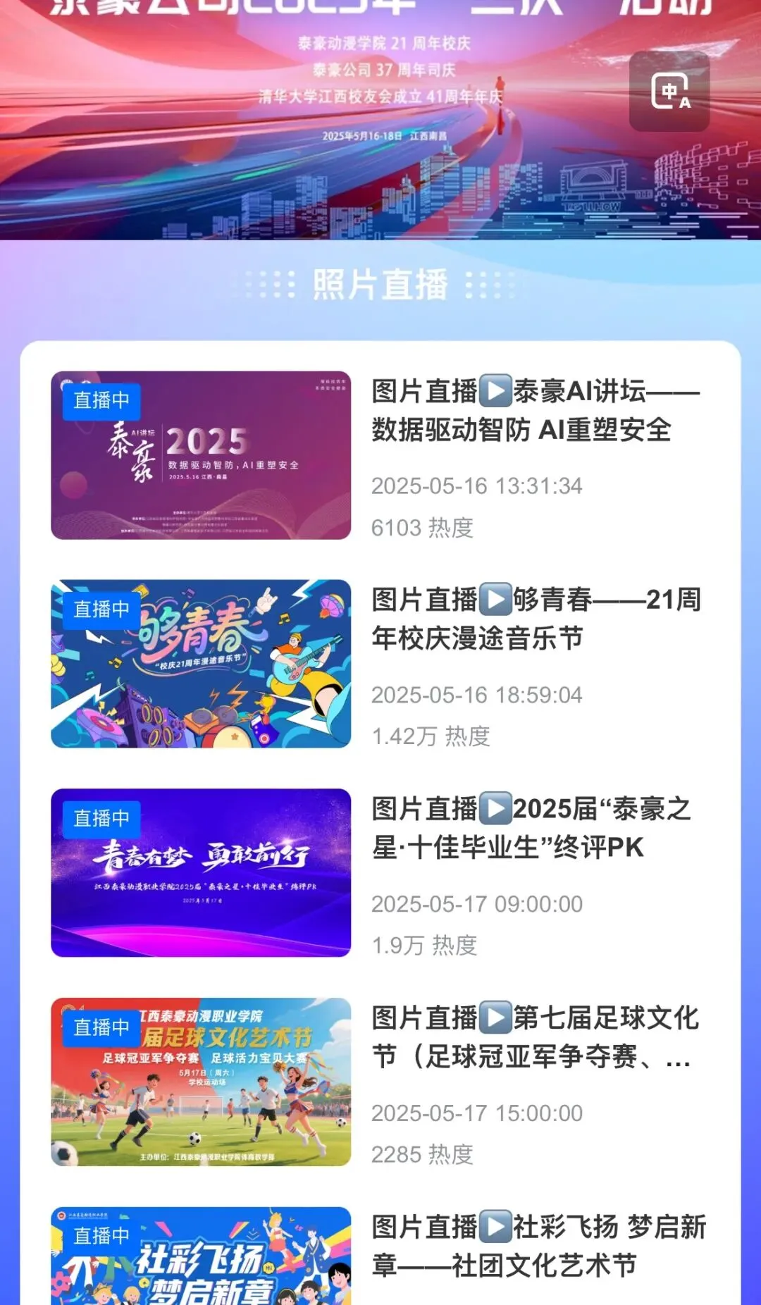 一是做强自有平台,攒好“私域流量”。我们把学校官网、微信公众号、视频号、抖音这些新媒体账号做精做细,每个平台各有侧重又互相补位。2025年,官微发布320余篇稿件,总浏览量破100万;视频号、抖音发布130条短视频,累计播放量70多万次,转载近1万次。学校21周年校庆时我们进行了9场线上线下直播、870张图片直播,媒体发稿共42条;开学典礼、入学教育进行了9场直播;“校园主播美食寻宝记”这种贴近生活的直播,共吸引了超2万人观看。这些互动让我们和学生的连接更紧密,也为“价值共鸣”奠定良好基础。