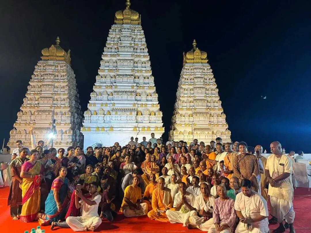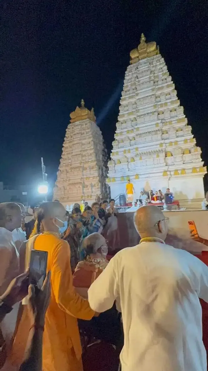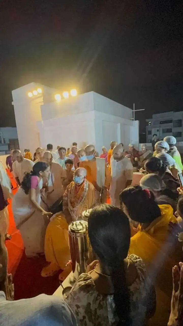 在去曼迪尔的路上,我遇到了“神圣触碰学校”的学生们。他们向我献上了鲜花、水果和一束花,还唱诵了《布茹阿玛-萨密塔》(Brahma-saṁhitā)。