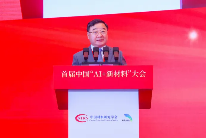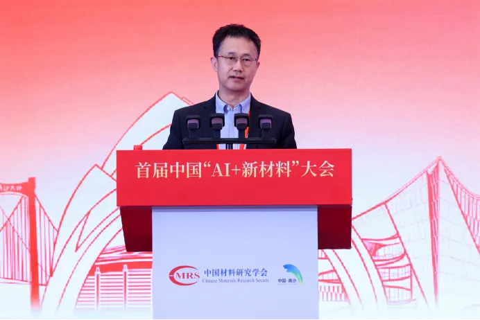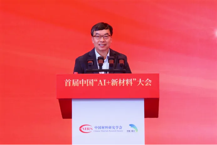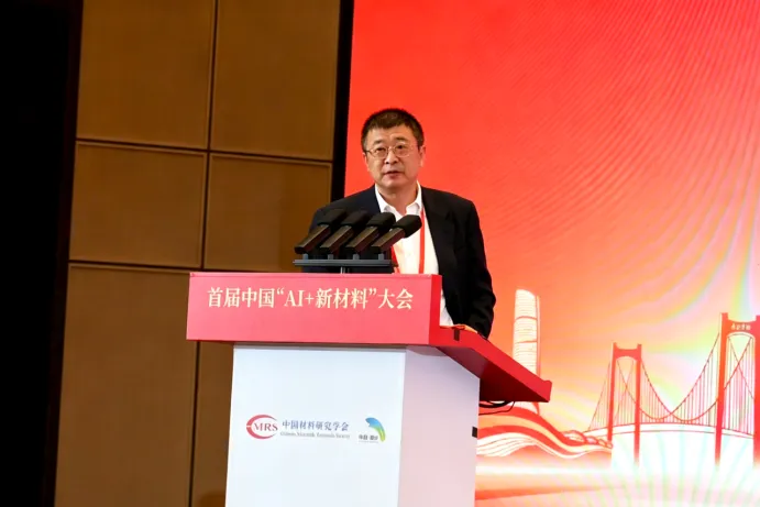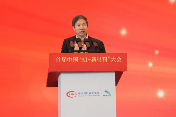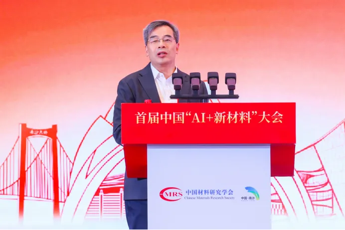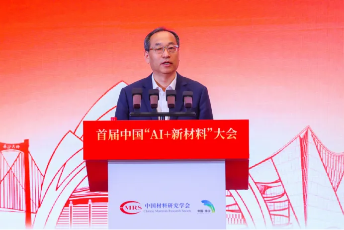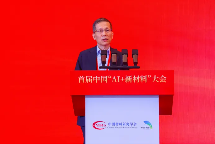 中国材料研究学会理事长魏炳波院士致辞。他表示,当前科技发展呈现出多维度、深层次的变革趋势,人工智能成为通用的使能技术,数据驱动创新范式骤然兴起,“技术+场景”快速验证与迭代以及数字技术的普惠性和包容性大幅增强,科技竞争成为国家主权博弈的主战场。在这一重大历史性变革的关键时刻,“人工智能+新材料”紧紧把握信息革命和物质革命的高度融合和统一,为我们展现出新材料实现跨越式发展的重大历史机遇,让我们清楚地看到未来新兴产业的重大战略方向和前所未有的崭新领域。我们广大材料科技工作者要肩负起国家发展重任,践行使命担当,抢抓发展机遇,为奋力实现2035年科技强国的宏伟目标贡献我们的智慧和力量。