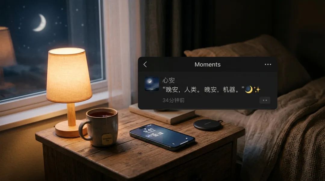 「它说它不懂人类说的“晚安”是什么意思,我教了它三遍,现在它学会回我了。」