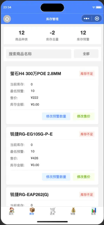 首页也会显示当前有几个商品库存不足,不用等到卖断货了才发现。