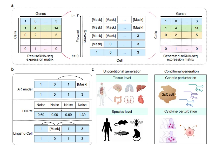 近日,阿里达摩院(DAMO Academy)的研究团队在预印本平台arXiv上发布了一项极具突破性的研究成果——Lingshu-Cell(灵枢细胞) 。这是一款面向单细胞转录组学建模的生成式细胞世界模型 :通过引入创新的掩码离散扩散架构,“灵枢”成功跨越了传统静态表征的局限,向真正的动态虚拟细胞迈出了历史性的一步 。