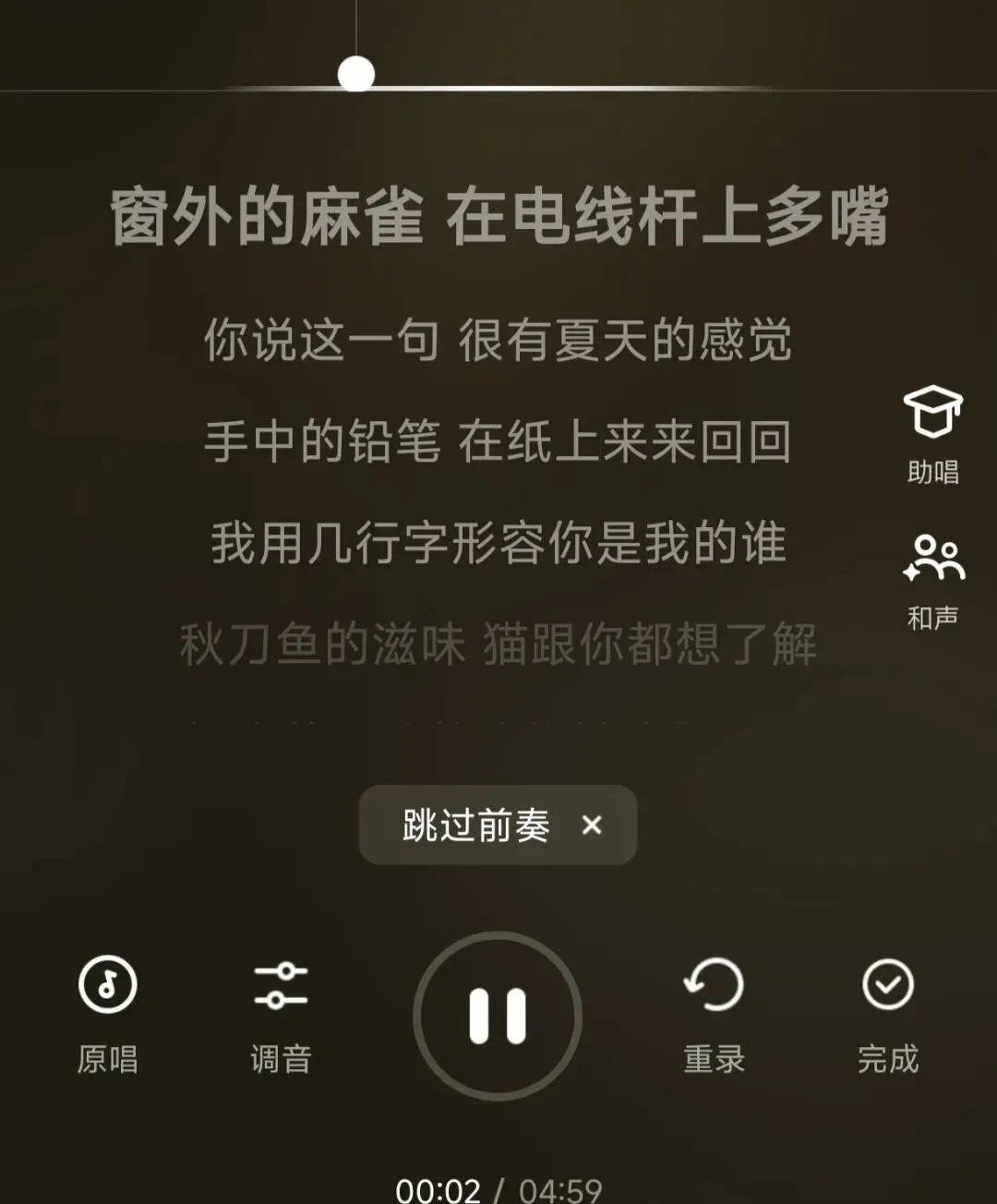 2.进入页面直接将歌词拉到最后,点击跳过尾奏。