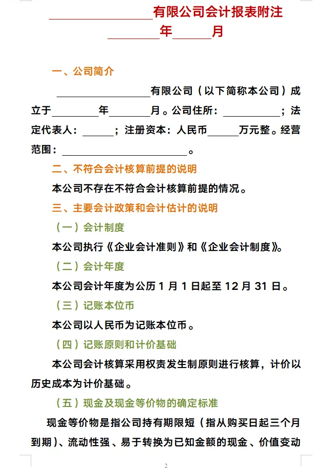财务报表附注