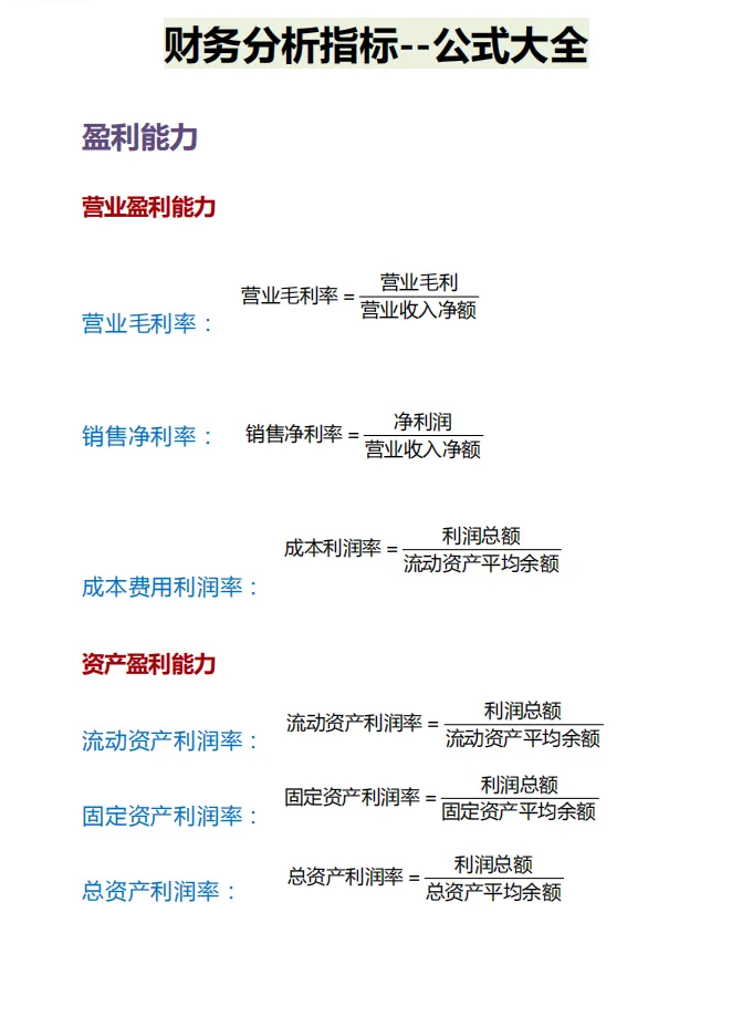 财务分析指标——公式大全