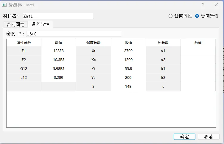 材料参数为: