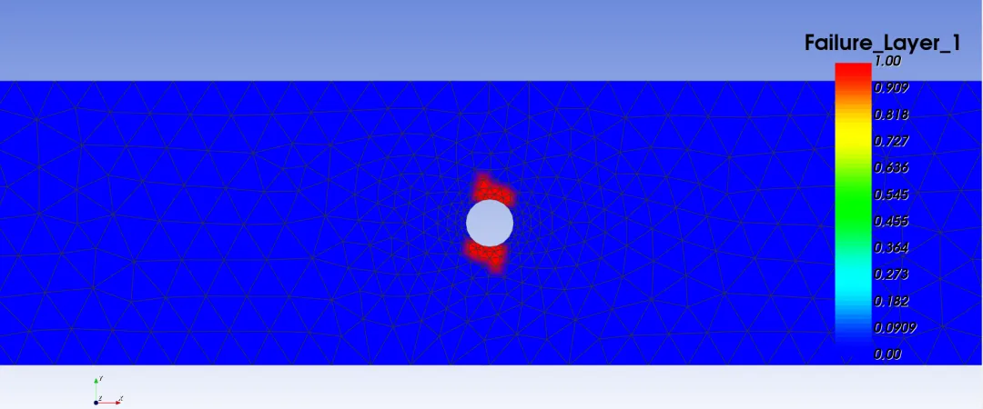 对于复合材料来说,这个过程会更复杂。因为每个单元代表了很多铺层,需要逐层进行失效判断和性能折减。