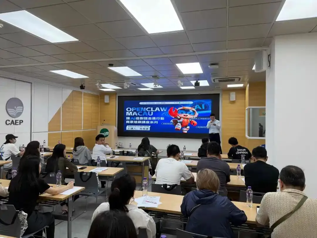 為推動本地餐飲及外賣商家數碼轉型,由澳門外賣行業協會主辦、澳覓APP協辦、以及業餘進修中心場地支持舉辦的「OpenClaw Macau──讓AI從對話走進行動」商家培訓講座,前日在業餘進修中心1樓禮堂圓滿舉行。