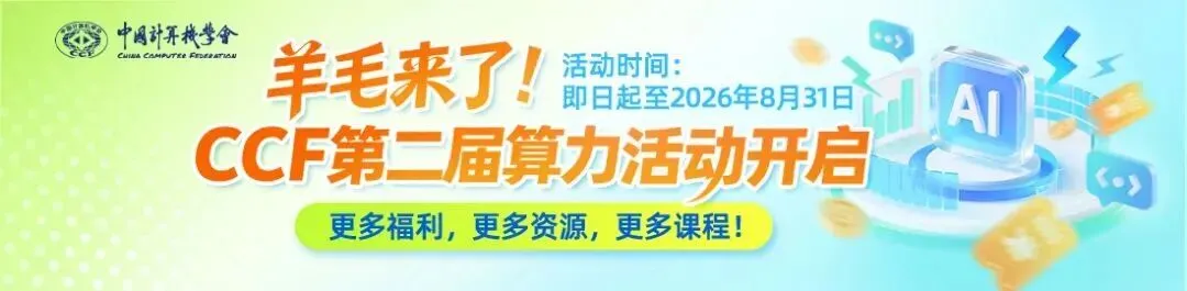 同时,为方便CCF会员在学习过程中有充足的算力资源支持,可报名CCF算力活动!CCF学生会员最高可领取4800+元算力资源,CCF专业会员最高可领取2.6w+元。