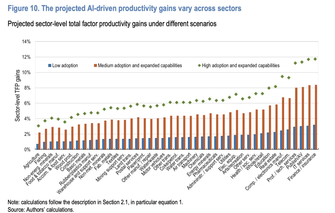 We also can lump together the impact of AI on social sustainability, like healthcare or education and skills development. In the field of economic sustainability AI can help to enhance supply chain management or drive productivity for digital entrepreneurship and trade.