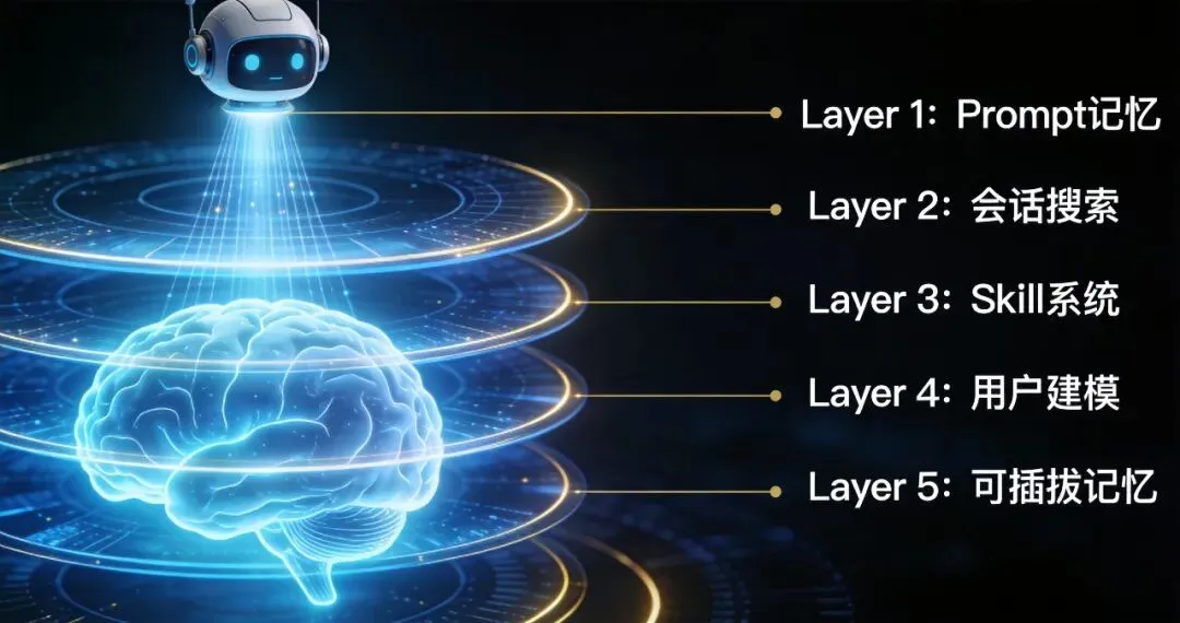 Hermes Agent的记忆系统覆盖五层,是目前开源Agent框架中最完整的架构之一: