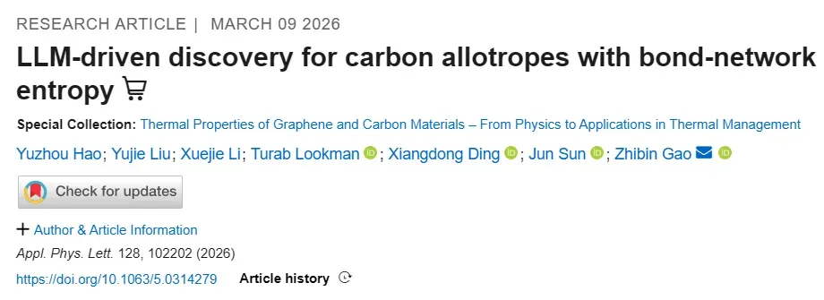 论文链接:https://pubs.aip.org/aip/apl/article-abstract/128/10/102202/3382659/LLM-driven-discovery-for-carbon-allotropes-with